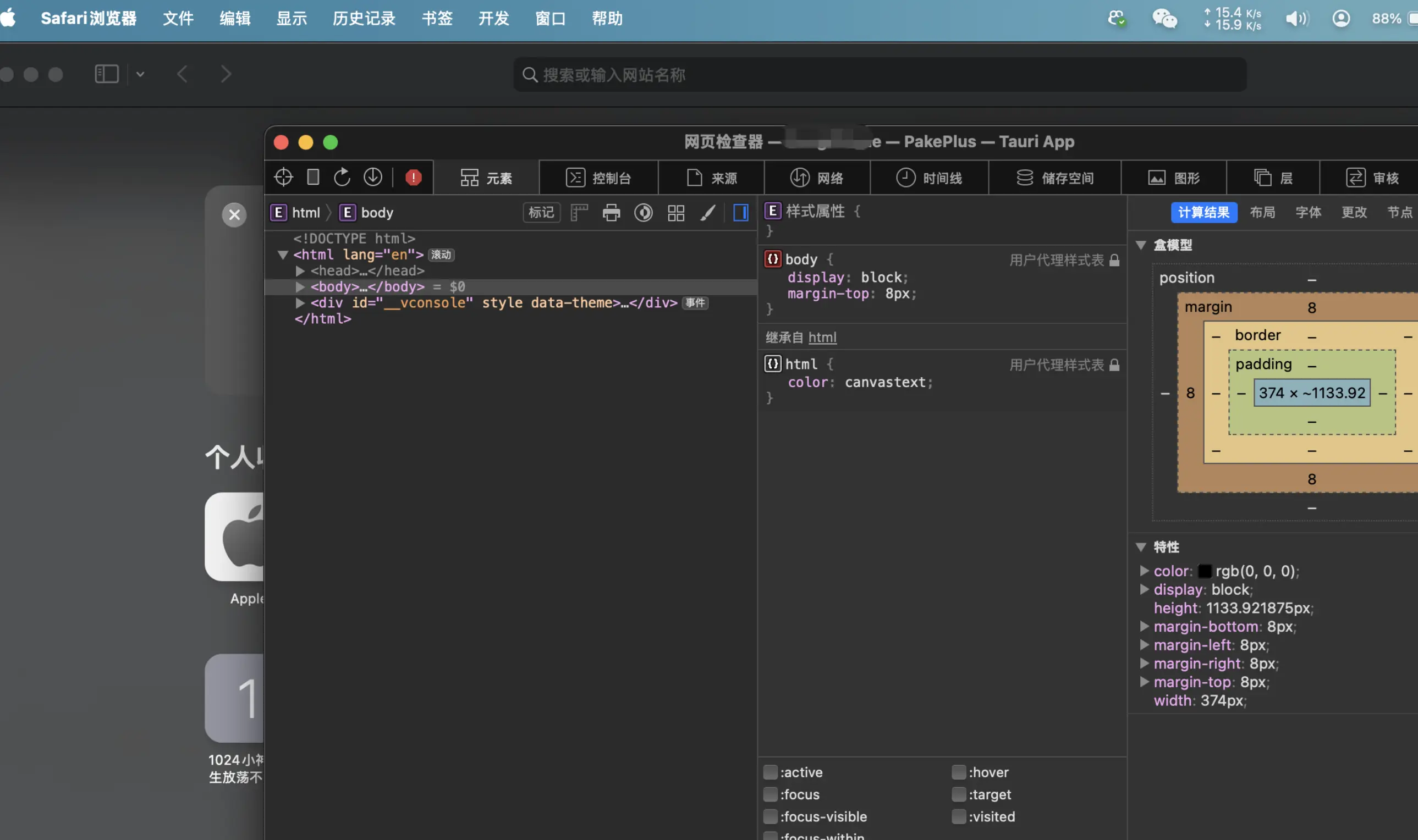 ios 连接 mac 后,打开 safari 浏览器,在工具栏开发 -> 找到自己的设备 -> 对应的 APP: